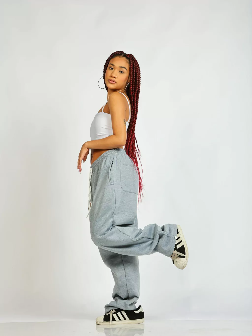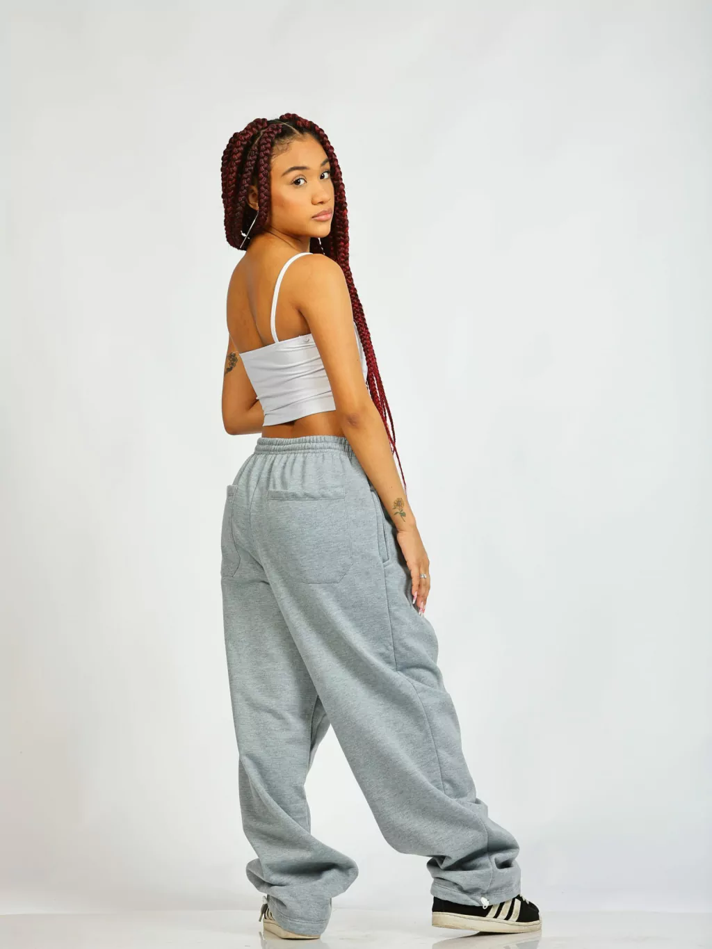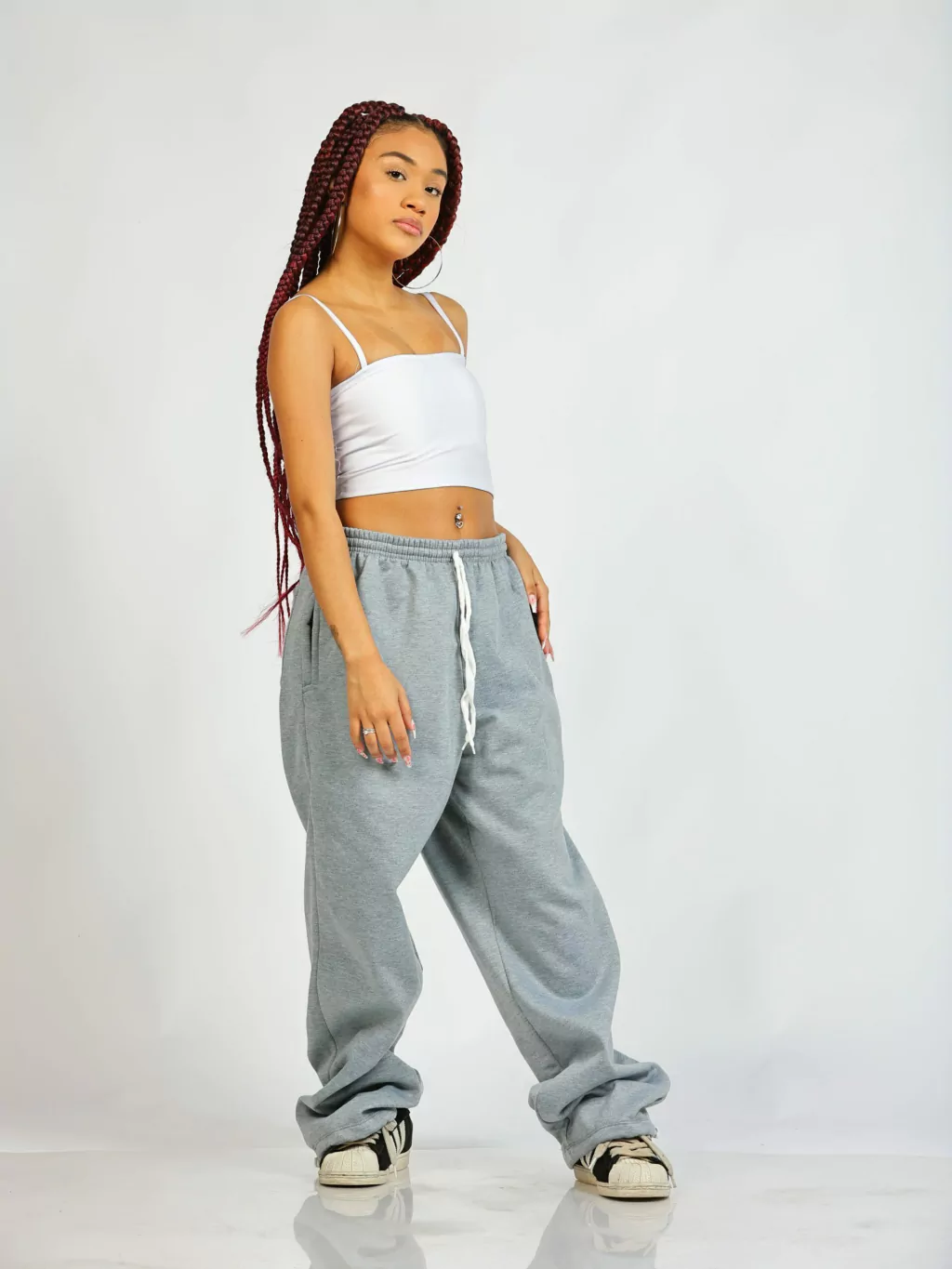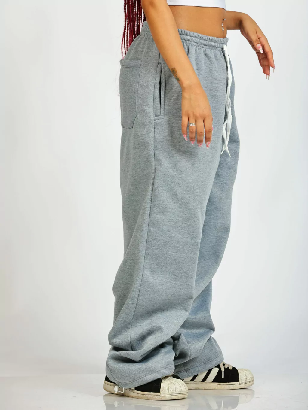 A calça baggy moletom cinza combina conforto extremo com estilo urbano Essa peça é confeccionada em moletom 2 cabos, flanelada por dentro ou seja, é quentinha e perfeita para os dias frios. Possui ajuste na barra com regulador, podendo ser usada no estilo jogger ou com a barra solta. A cintura tem elástico e cordão interno para amarração, e pode variar entre as cores preta ou branca, de acordo com a disponibilidade em estoque.