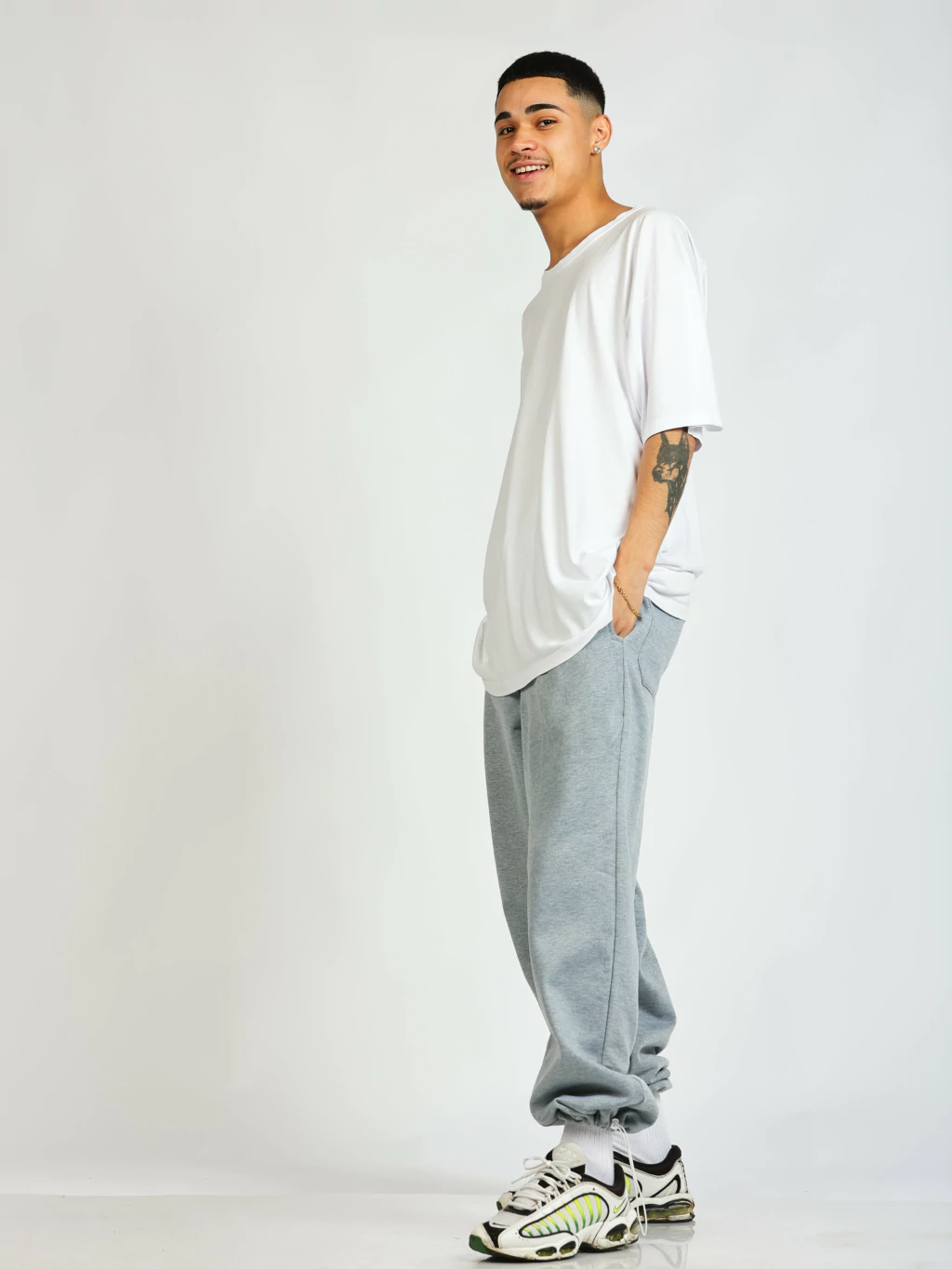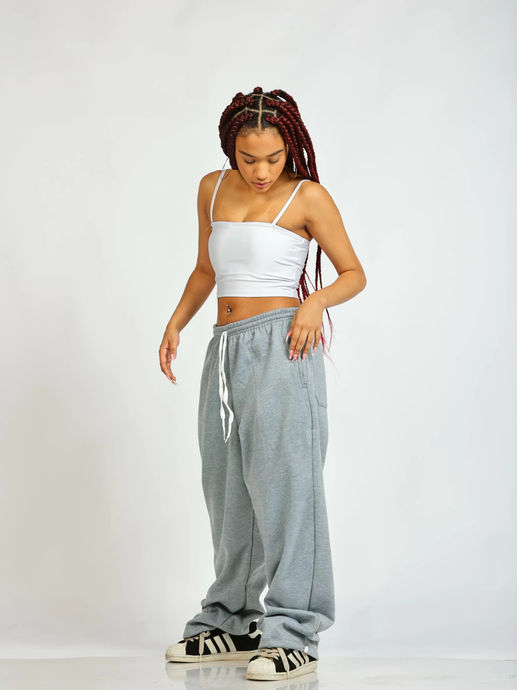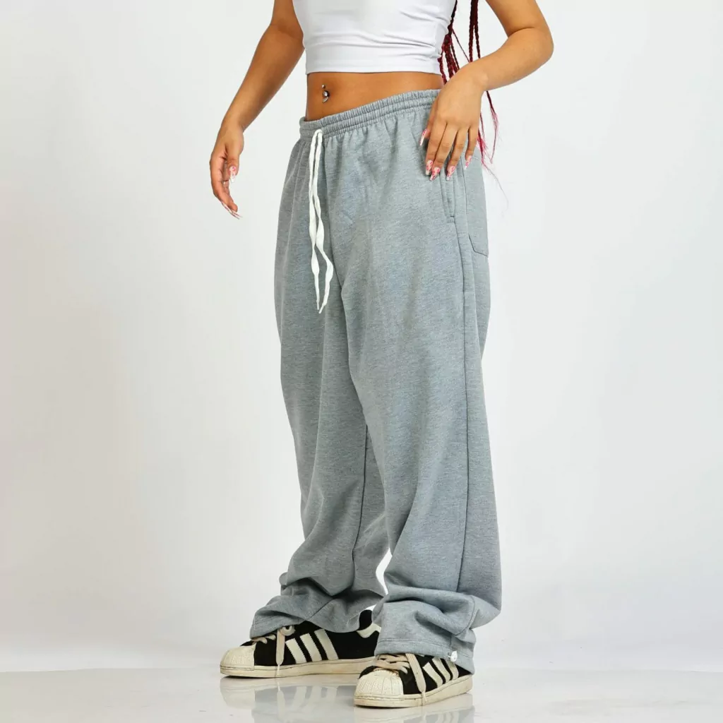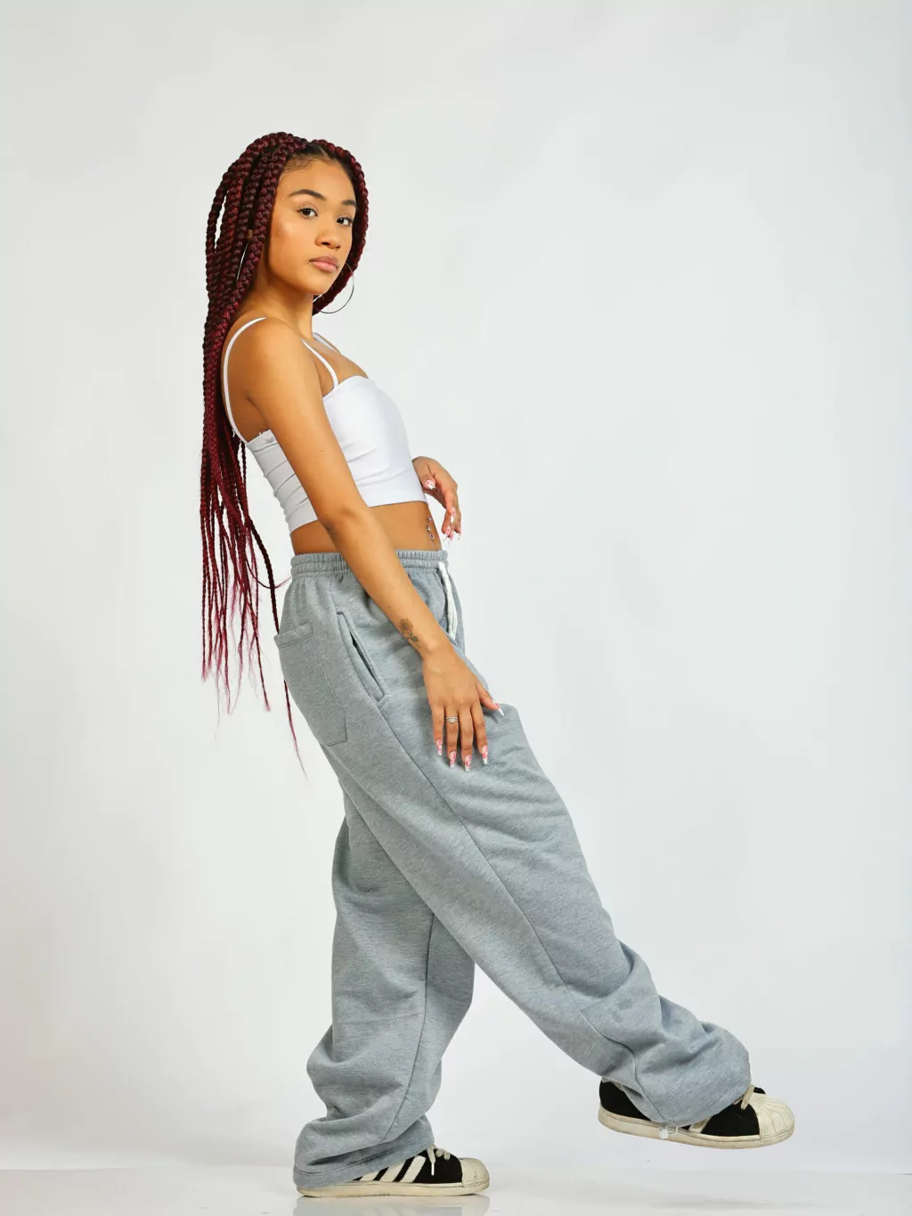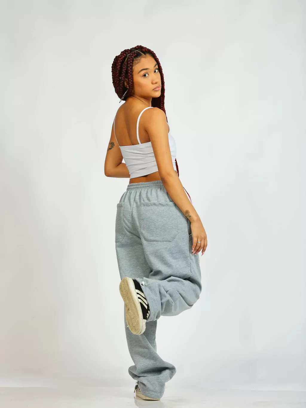 A calça baggy moletom cinza combina conforto extremo com estilo urbano Essa peça é confeccionada em moletom 2 cabos, flanelada por dentro ou seja, é quentinha e perfeita para os dias frios. Possui ajuste na barra com regulador, podendo ser usada no estilo jogger ou com a barra solta. A cintura tem elástico e cordão interno para amarração, e pode variar entre as cores preta ou branca, de acordo com a disponibilidade em estoque.