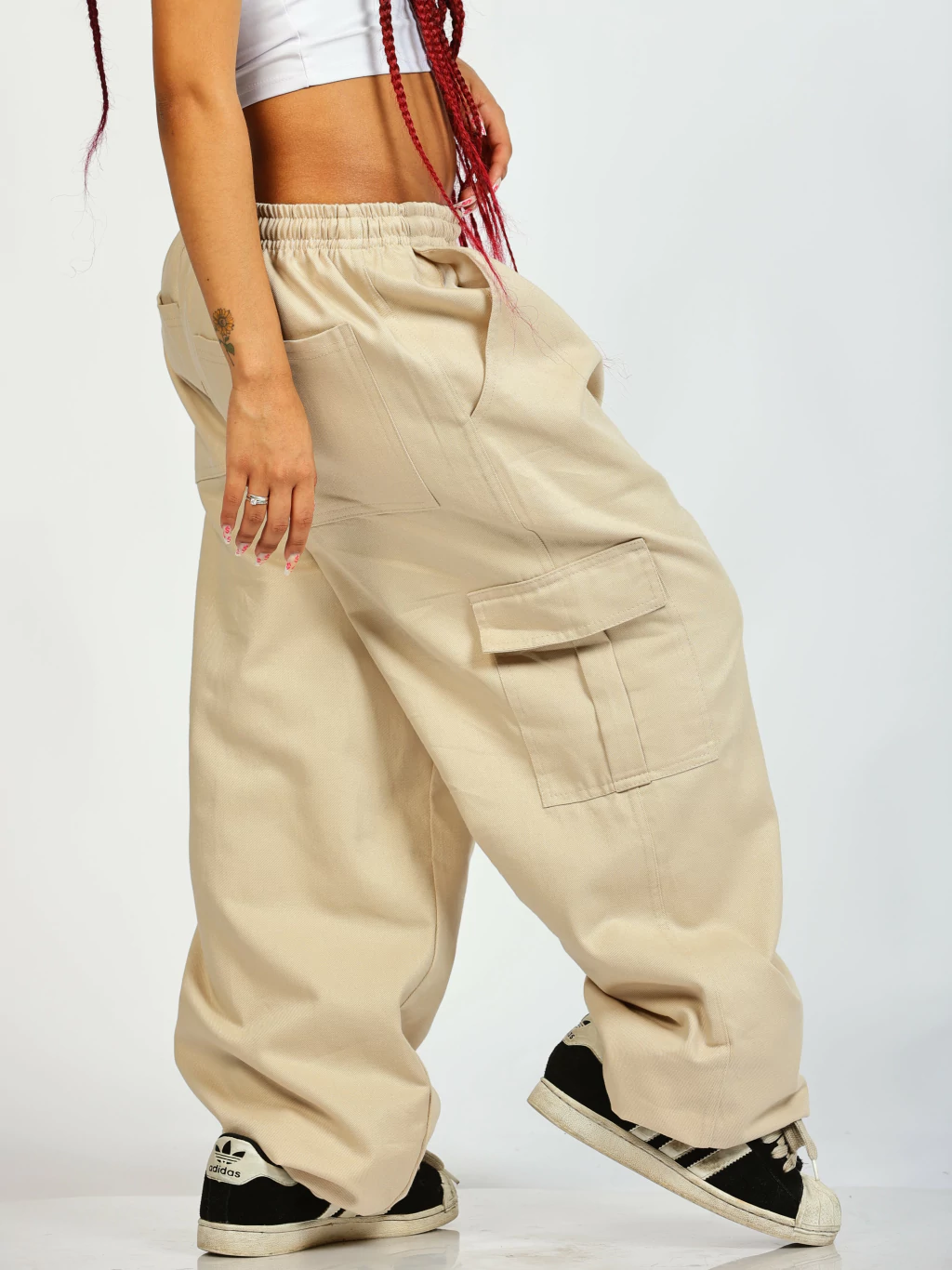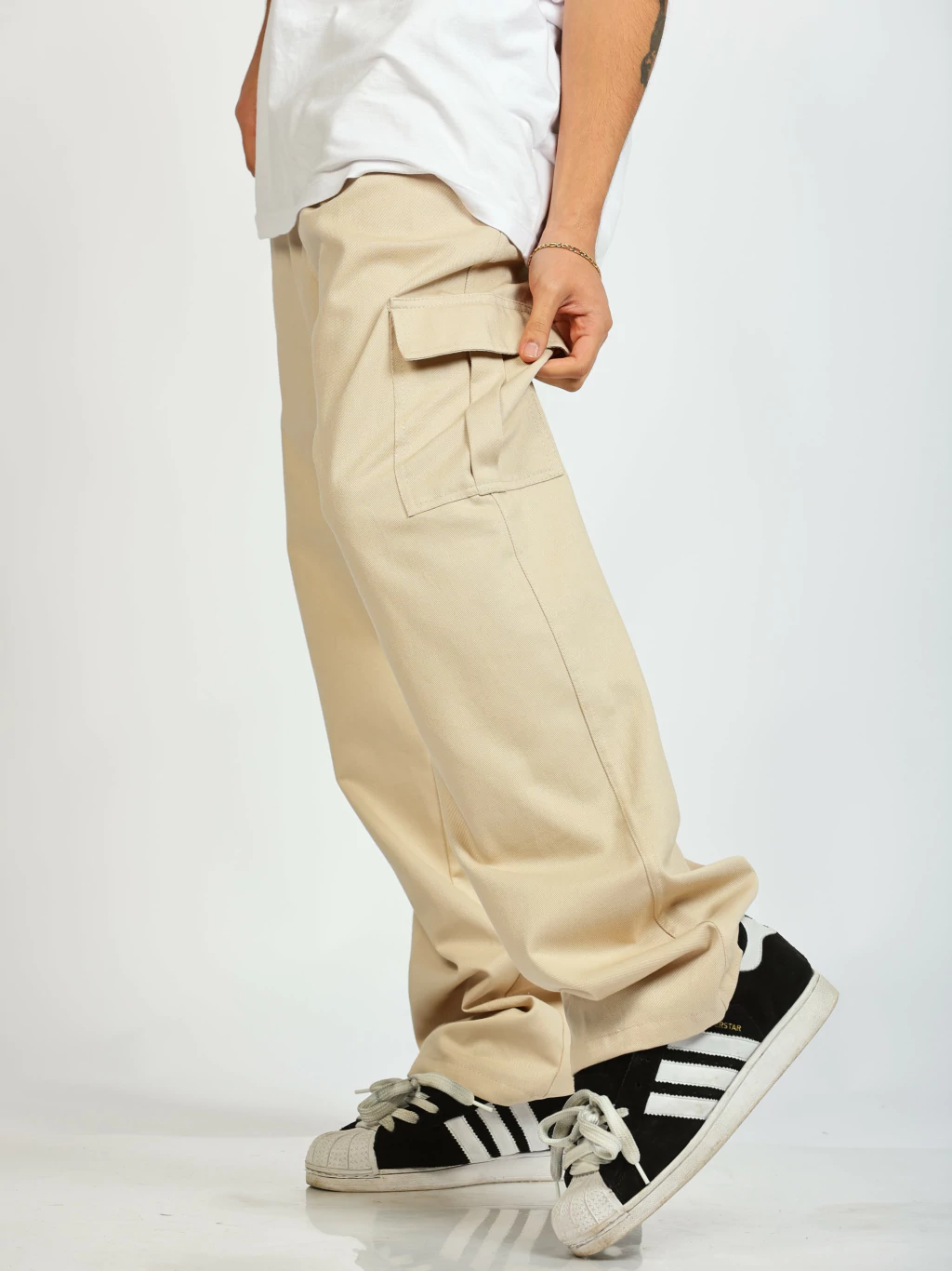 A calça cargo bege Co Buka é confeccionada em sarja 100% algodão, de gramatura pesada, o que garante conforto e durabilidade. Além disso, a sua modelagem foi feita com base nas calças "balão" dos anos 2000, que são essenciais para quem curte o streetwear clássico!