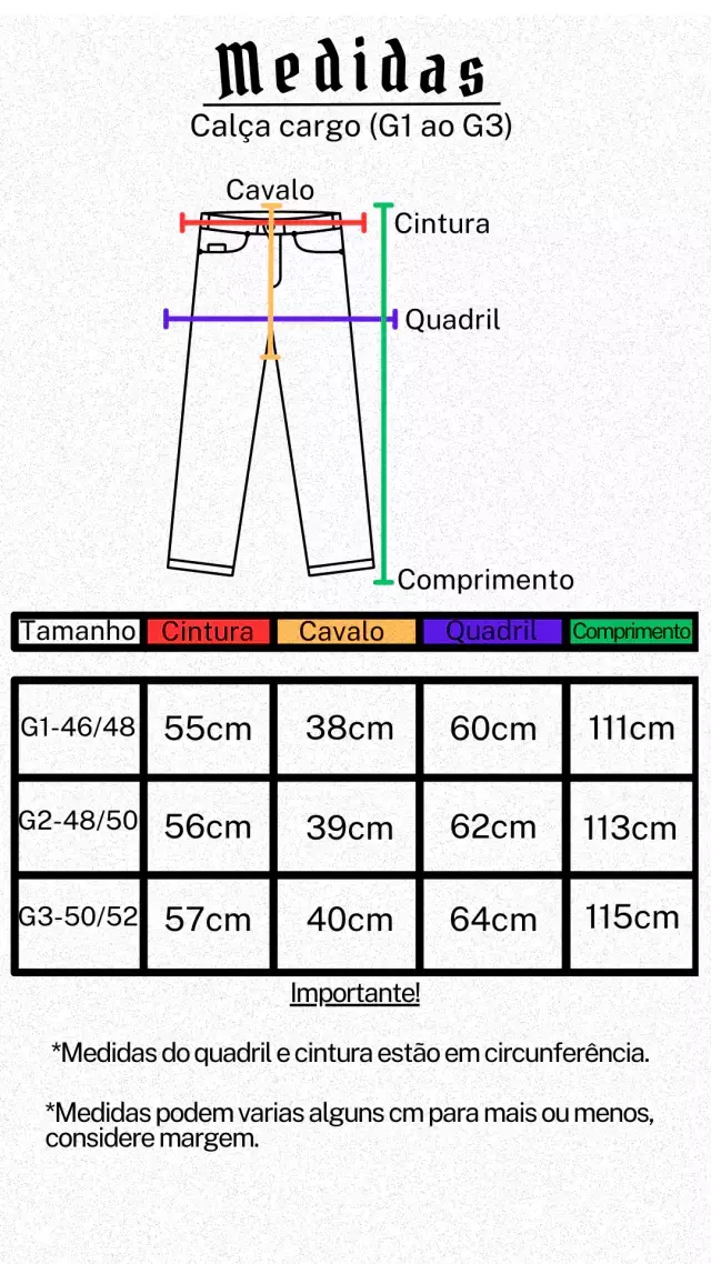 A calça cargo off white masculina Co Buka é confeccionada em sarja 100% algodão,de gramatura pesada, o que garante conforto e durabilidade. Além disso, a sua modelagem foi feita com base nas calças "balão" dos anos 2000, que são essenciais para quem curte o streetwear clássico!