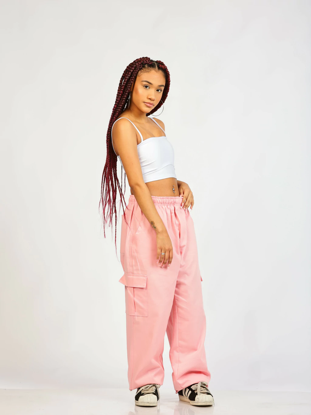 A calça cargo rosa Co Buka é confeccionada em sarja 100% algodão,de gramatura pesada, o que garante conforto e durabilidade. Além disso, a sua modelagem foi feita com base nas calças "balão" dos anos 2000, que são essenciais para quem curte o streetwear clássico!