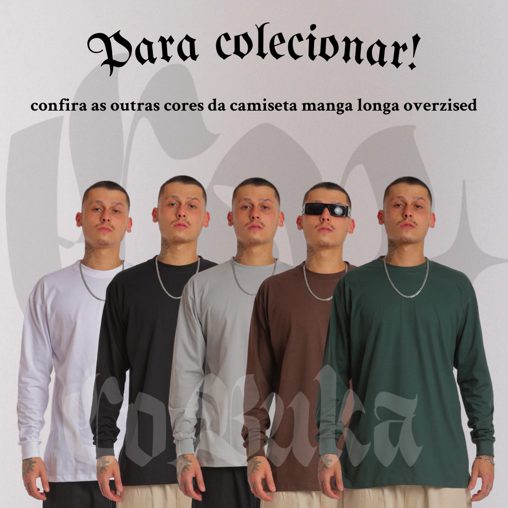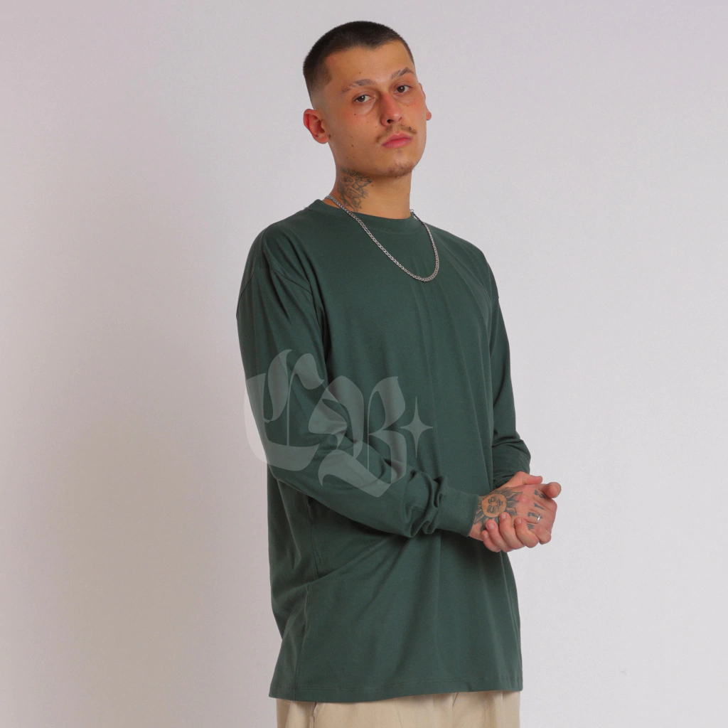 A Camiseta Oversized Manga Longa Verde Escura é ideal pra compor visuais urbanos com mais presença — seja usada sozinha ou como parte de uma sobreposição com calça cargo, jaqueta, regata ou moletom leve. Um clássico Co Buka: confortável, funcional e com estética forte.