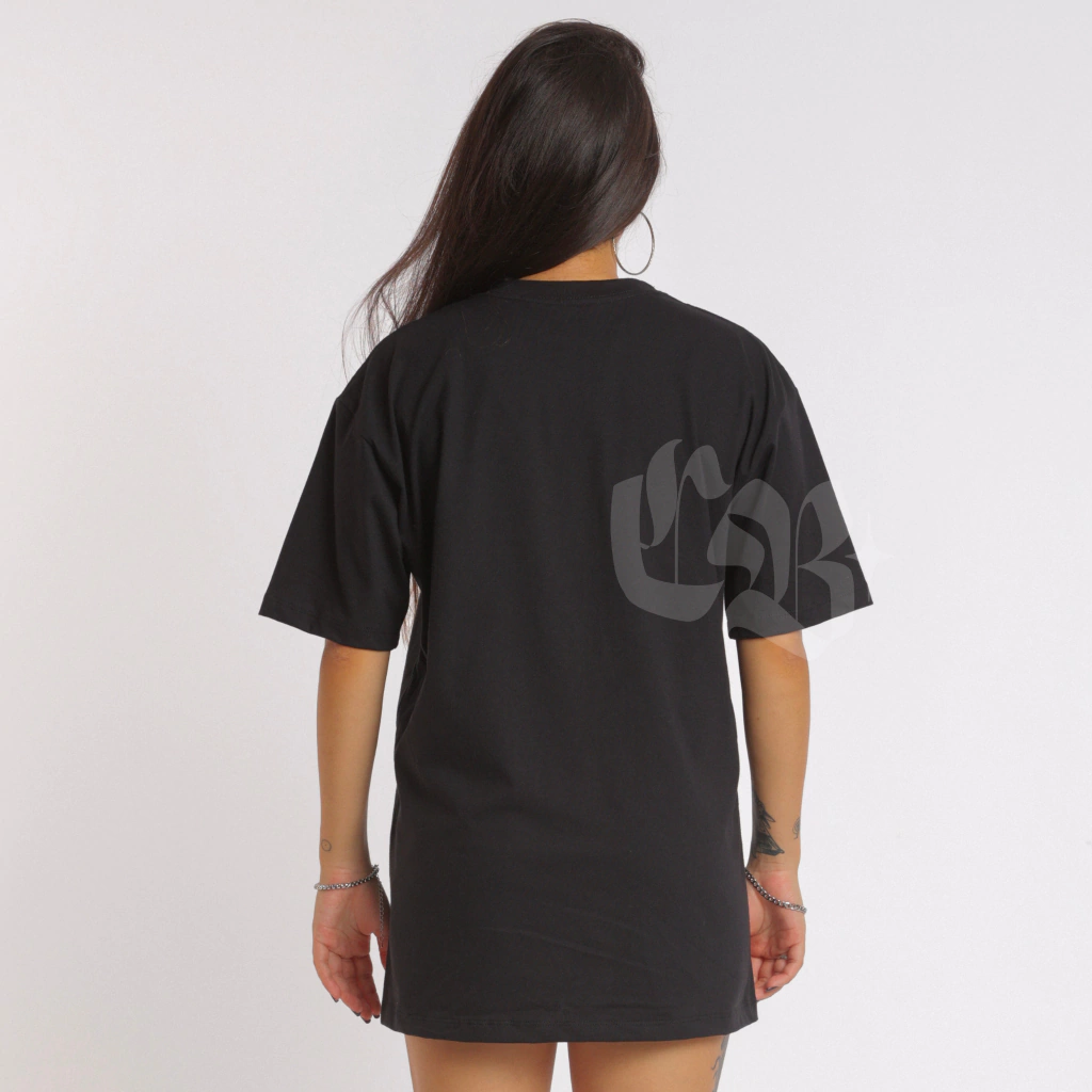 A Camiseta Oversized Preta é uma peça-chave no guarda-roupa de quem vive o streetwear com originalidade. Pode ser usada sozinha ou como sobreposição.
