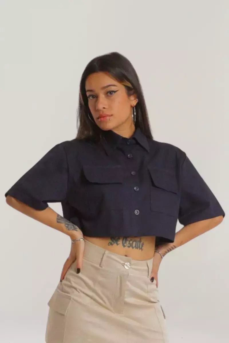 Os nossos croppeds work são uma versão menor das famosas workshirts! Fabricados em sarja, garantem um caimento "durinho" que vai super bem com qualquer tipo de calça, saia ou shorts. A sua gola possui entretela, ou seja, não se amassa com facilidade. Possui dois bolsos 100% funcionais!