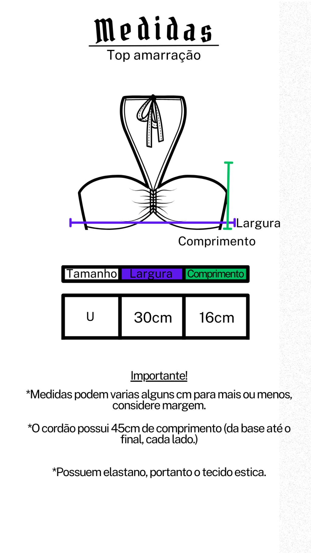Os tops amarração são uma peça coringa no guarda roupa: combinam com tudo. São confeccionados em tecido premium, 98% algodão 2% elastano. Elas se esticam, ou seja, se adaptam a todos os biotipos. NÃO possuem poliéster, portanto sua modelagem e caimento fazem com que se tornem uma das melhores peças do mercado. Além de tudo, possuem costura reforçada nos principais pontos, garantindo aquele acabamento Co Buka que vocês já conhecem!